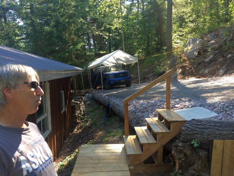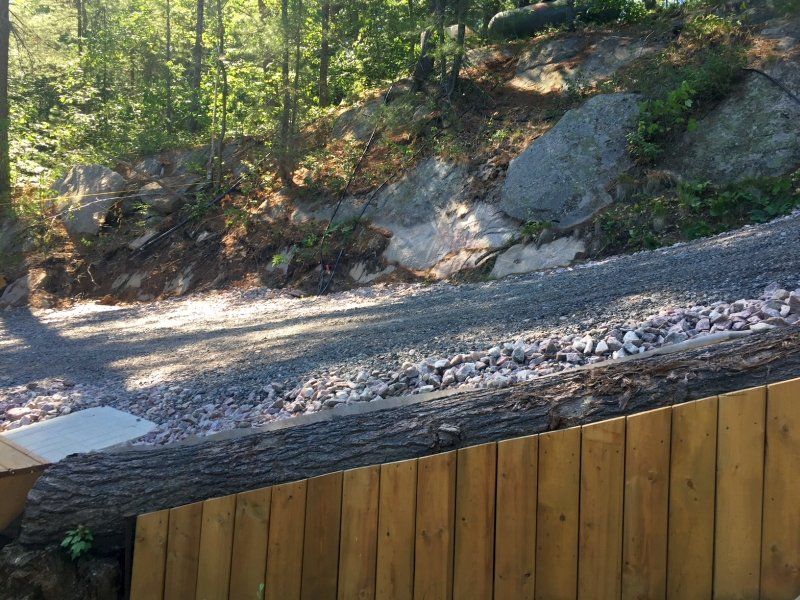 That rope and come-along should be a cable and turnbuckle connected to concrete anchor in the rock by the Birch tree.