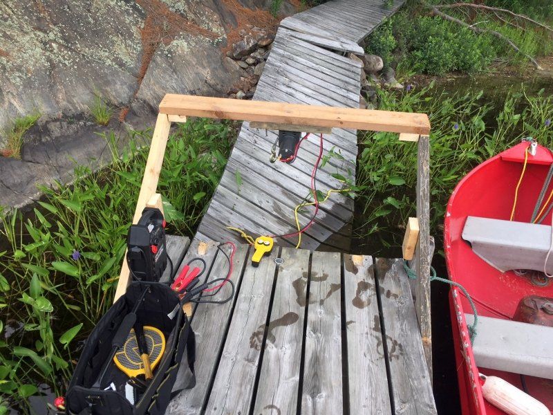 The pictures and a video show (see video below) the crane thing I made to lift the gangway onto the dock. That was borderline fun and pretty safe. That winch can be reconfigured for any use but I left it set up like that and it is in Door Number 1.
